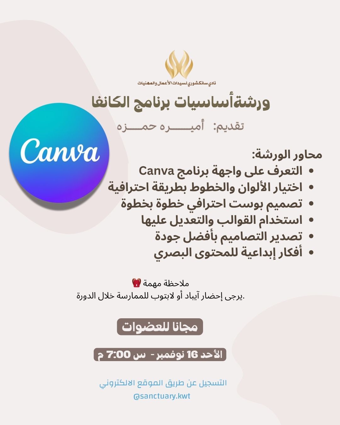 سجلي اليوم في هذه الورشة وأبدئي صح مع الفريق الصح
