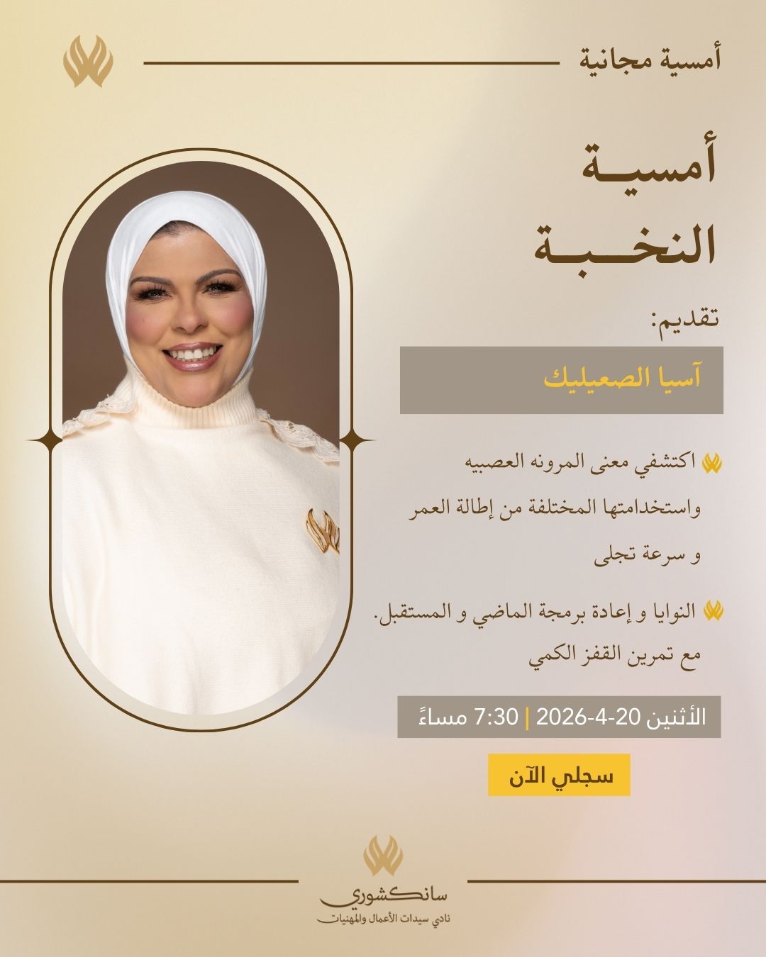 سجلى اليوم في أمسية نسختي الجديده و ستحصلين على الإجابه لكل هذه الأسئلة